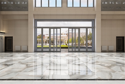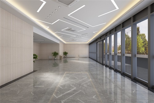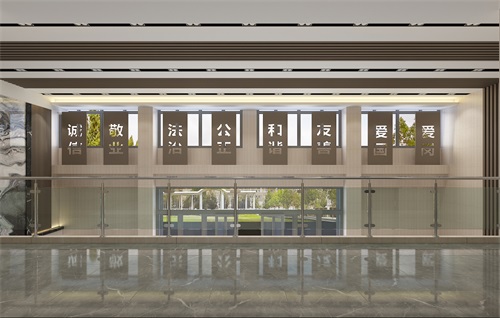 此次辦公樓裝修面積比較大而且空間規(guī)劃布局也比較復(fù)雜,設(shè)計(jì)師將辦公樓大廳作為設(shè)計(jì)的重點(diǎn),一走入大廳就可以看出整個(gè)辦公樓的設(shè)計(jì)檔次和裝修效果。進(jìn)入大廳,首先我們可以清晰地看到企業(yè)的文化標(biāo)語(yǔ),以其企業(yè)文化的自由、平等、公正、法治、愛國(guó)等為主題,體現(xiàn)了企業(yè)的發(fā)展理念。側(cè)面的大理石裝飾墻給整體空間帶來(lái)了視覺沖擊感,也是大廳華麗的標(biāo)志。大廳地面采用通透而淡雅的花紋瓷磚,直中見曲,打破了單一、整齊的格局,打破原寂靜的空間,大廳上方呼應(yīng)以直線為主調(diào)、整齊連貫的吊頂,大直大方顯示出強(qiáng)烈的縱深感,加之以排列整齊的燈光設(shè)計(jì),讓整體空間突顯出工整氣派、大家風(fēng)范的企業(yè)形象。在二樓走廊的設(shè)計(jì)上,地面瓷磚的顏色相對(duì)沉穩(wěn)柔和,頂面的造型簡(jiǎn)約, 以突出空間的舒適感。整體簡(jiǎn)約大氣的裝修風(fēng)格體現(xiàn)出企業(yè)辦公樓的現(xiàn)代時(shí)尚特性,以干練快捷的設(shè)計(jì)節(jié)奏,展示出質(zhì)量與效率并舉的時(shí)代精神。